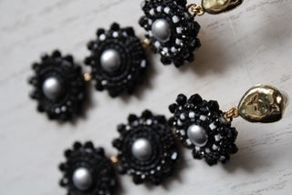 FAT SS 25' - GOOD MEDICINE - BLACK - 3-TIER BEADED EARRINGS