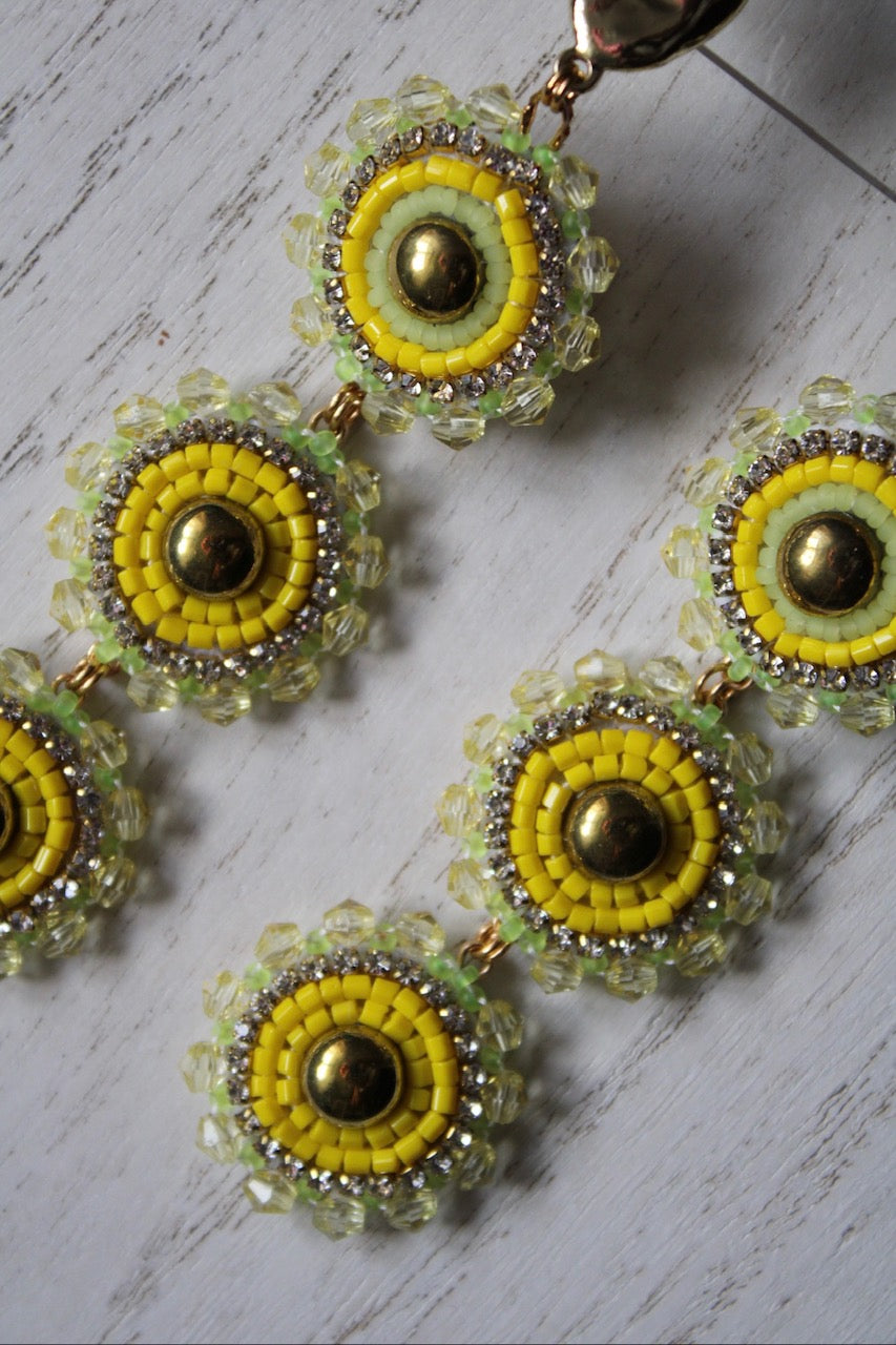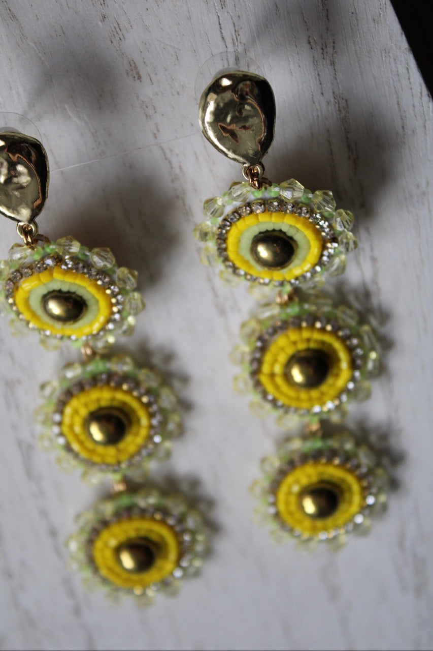 FAT SS 25' - GOOD MEDICINE - YELLOW - 3-TIER BEADED EARRINGS