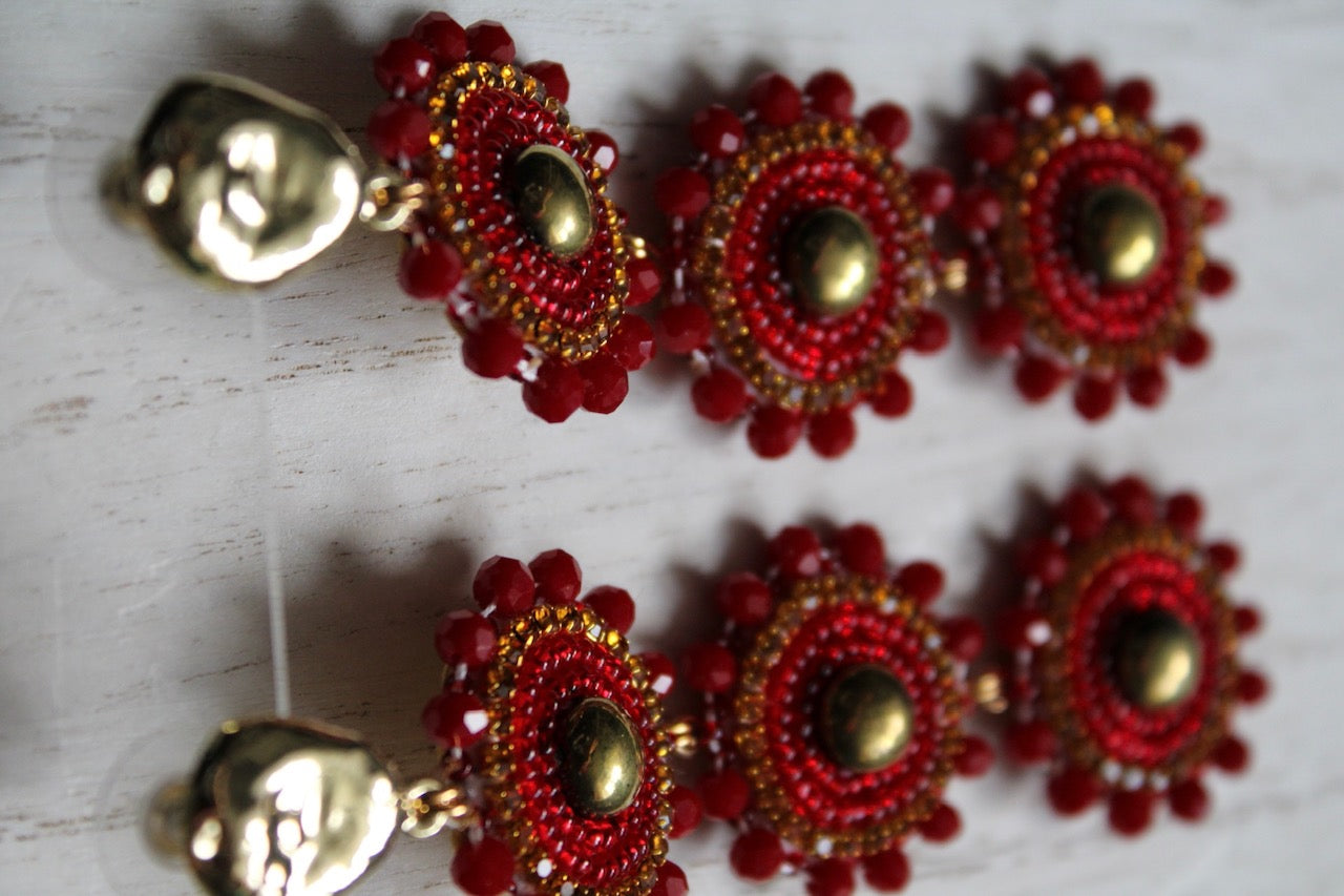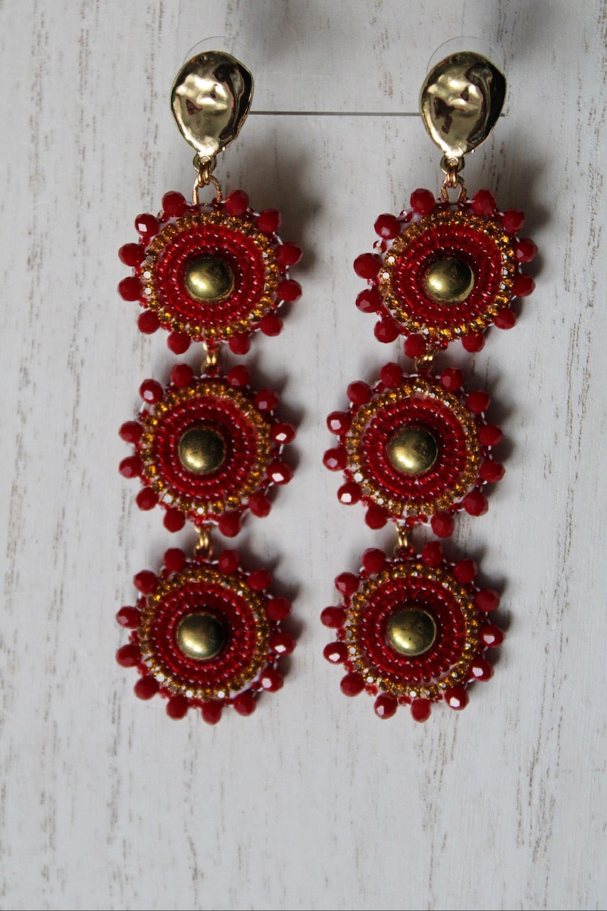 FAT SS 25' - GOOD MEDICINE - RED - 3-TIER BEADED EARRINGS
